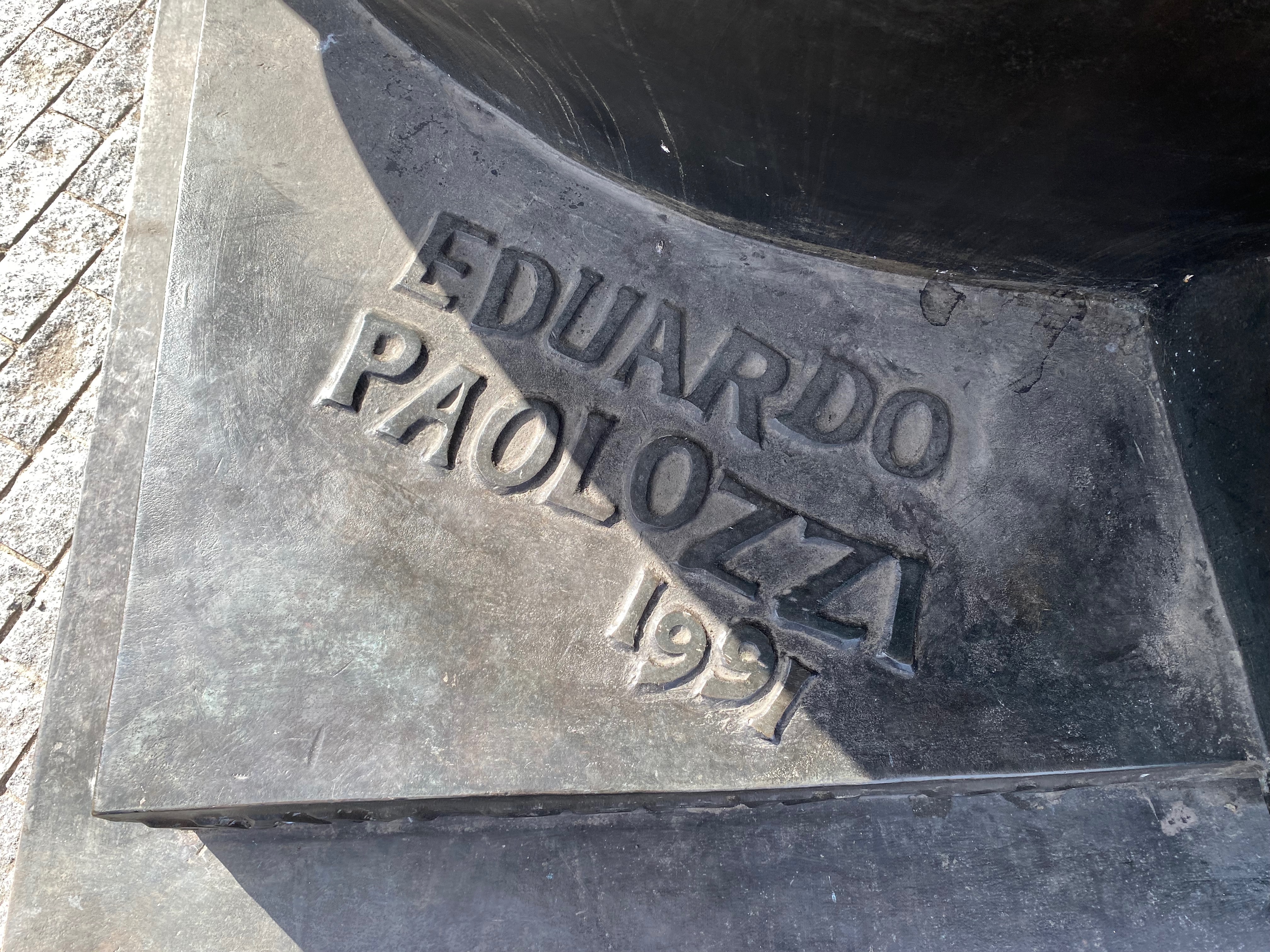 The big foot, along with a hand and ankle is a sculpture, called “The Manuscript of Monte Cassino” by Eduardo Paolozzi. He was Edinburgh-born, but mostly lived in England. He was knighted and appointed as the Queen’s Sculptor. You were near him once, when he came into the gallery with the art critic while we were installing the Max Ernst exhibition. He was getting a sneak preview, as was his prerogative. There are quite a few Paolozzi works dotted around Edinburgh; at the Portrait Gallery, at the University, outside in the grounds of SNGMA and round the back by the café. There’s one giant one, “Vulcan” inside the café across the road. Last time you saw it, it seemed dusty, it sits there looming over people drinking coffees. You say you hope it has been dusted.