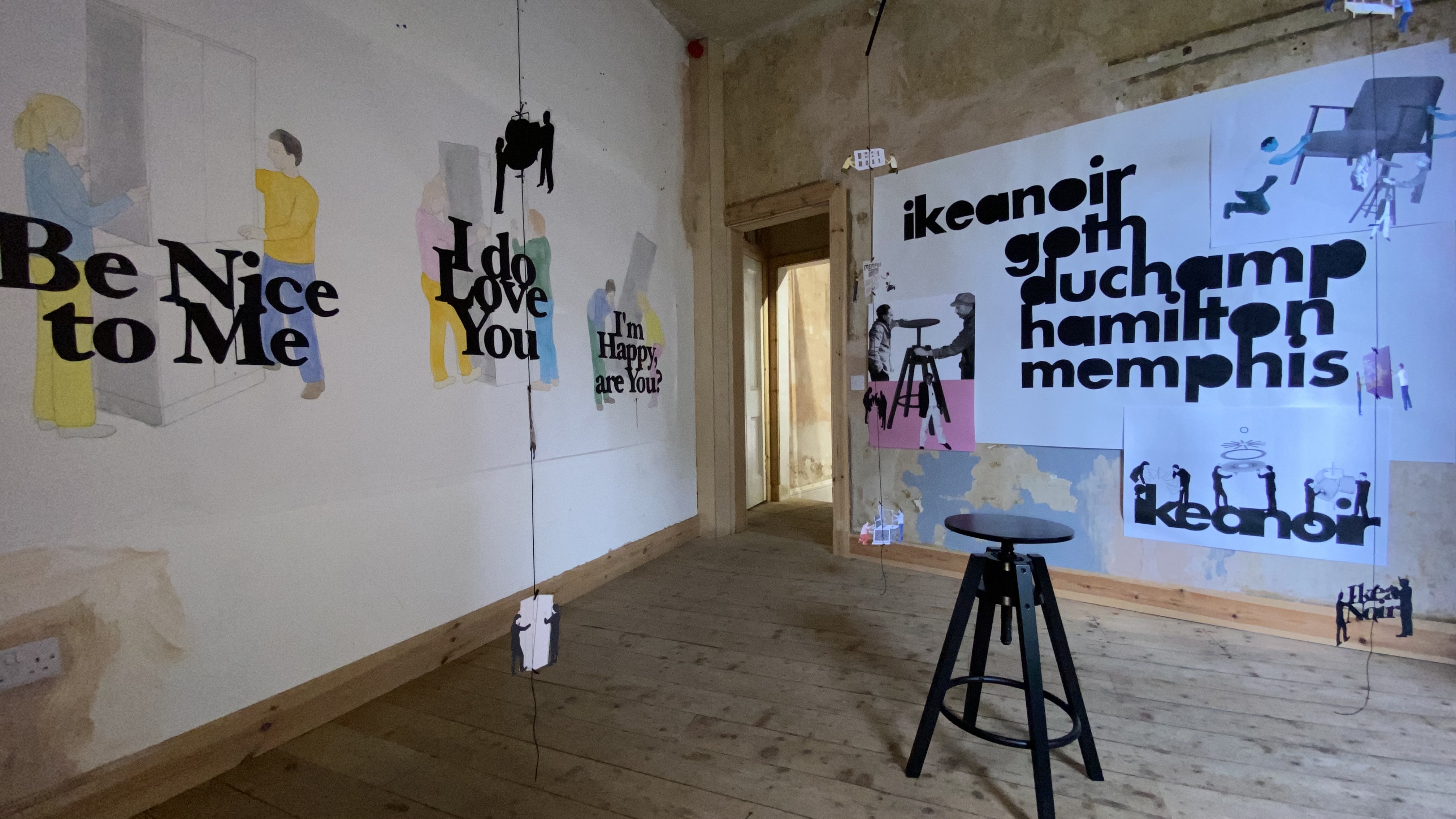 The illustrative text and mobile work is based on my interest with the everyday, personal relationships, art and design history, and product design crossovers. I am intrigued by IKEA as a place and activity which offers us products, which we then load with feelings and relationships when we might DIT (do it together).